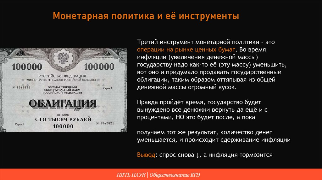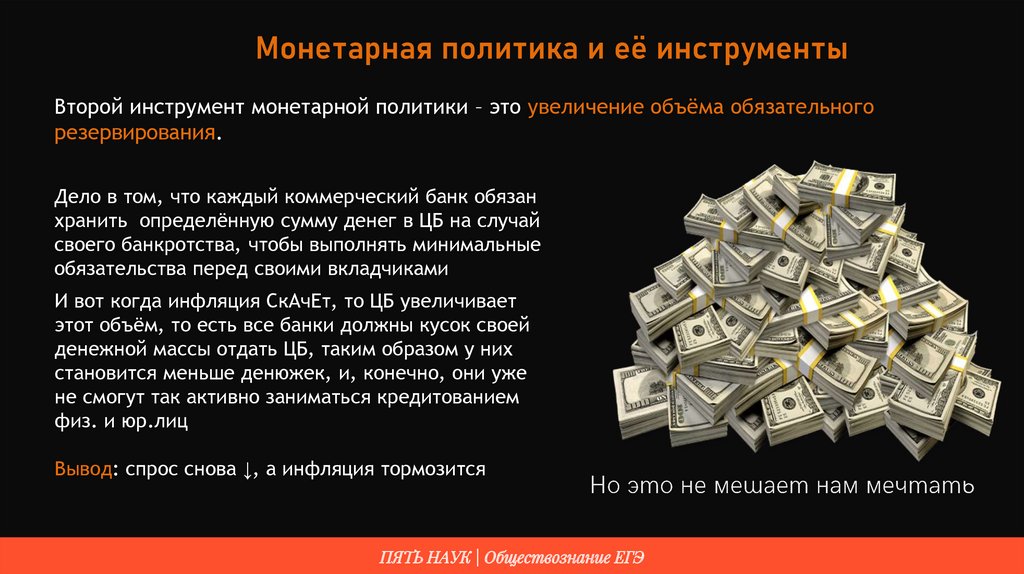 Монетарная политика и её инструментыВторой инструмент монетарной политики – это увеличение объёма обязательного