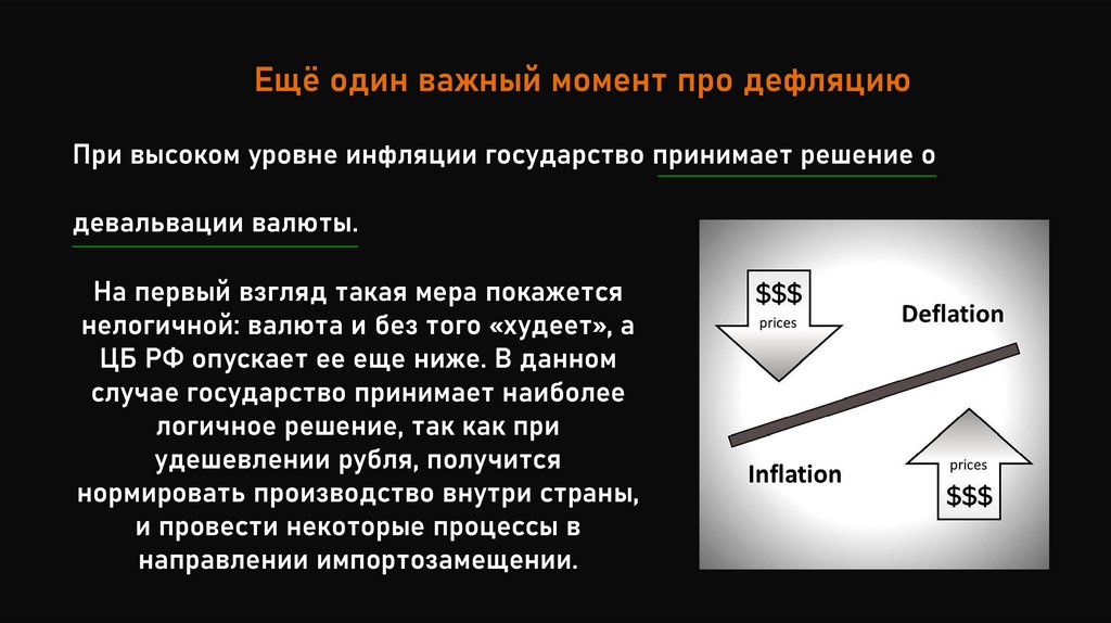 Ещё один важный момент про дефляциюПри высоком уровне инфляции государство принимает решение о