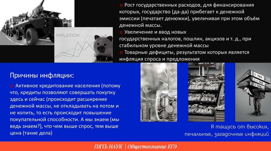 ⎊ Рост государственных расходов, для финансированиякоторых, государство (да-да) прибегает к денежной
