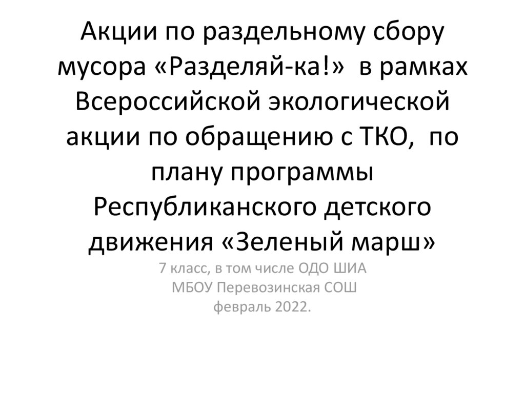 Акции по раздельному сборумусора «Разделяй-ка!» в рамках