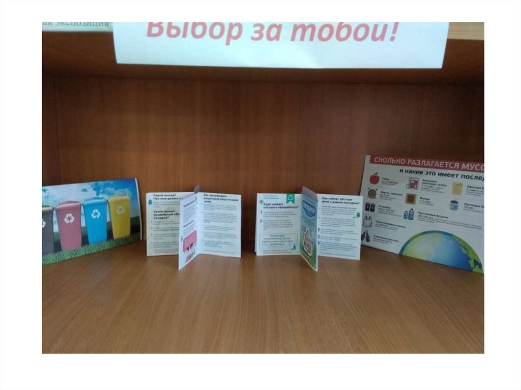 • В рамках акции оформлена экспозиция овидах мусора и возможности их сортировки.