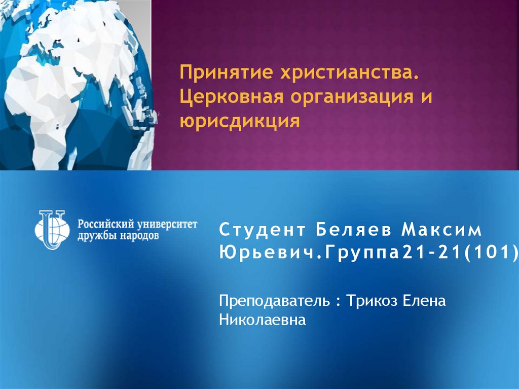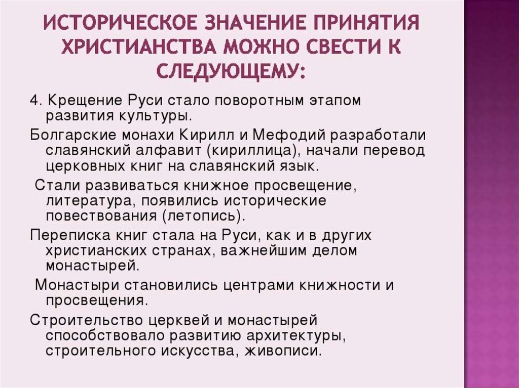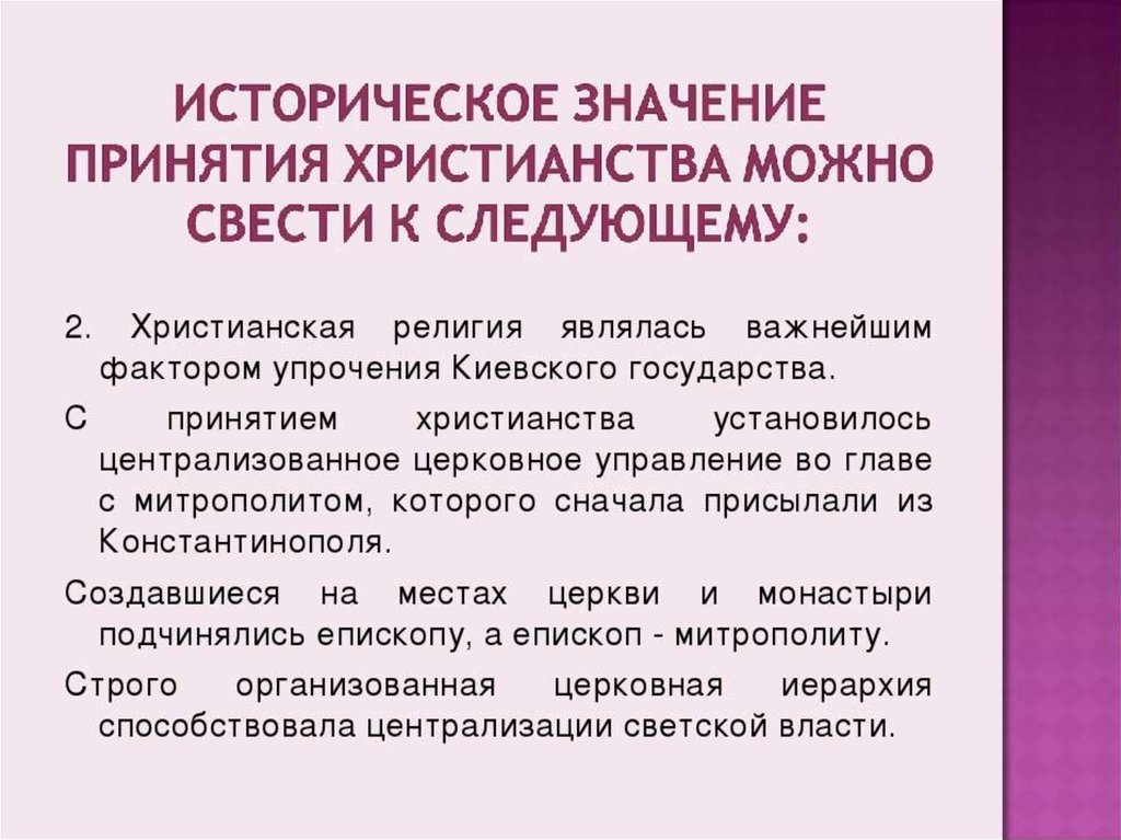 Принятие христианства.Церковная организация и