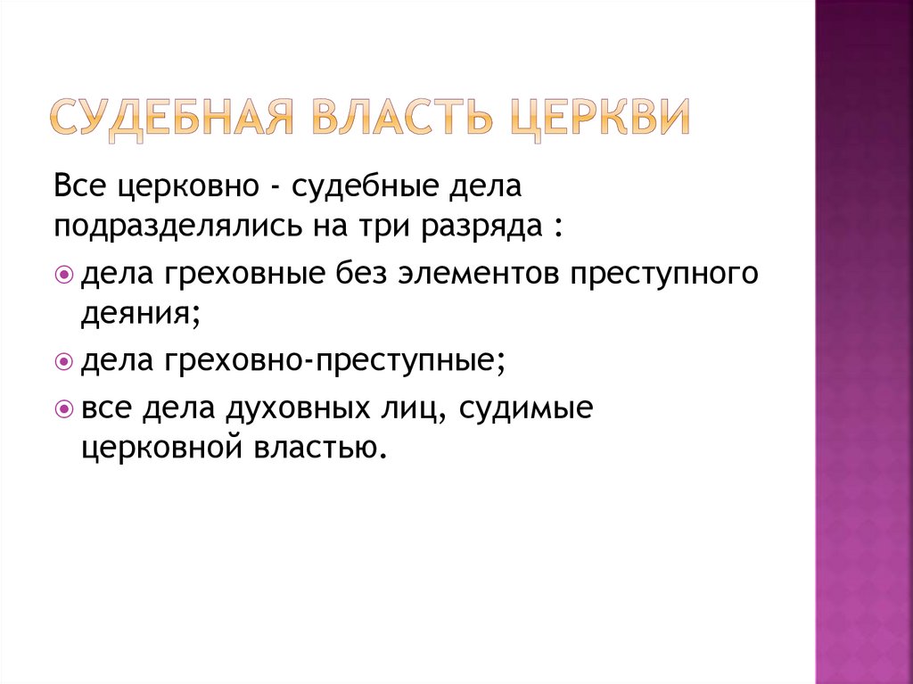 Все церковно - судебные делаподразделялись на три разряда :
