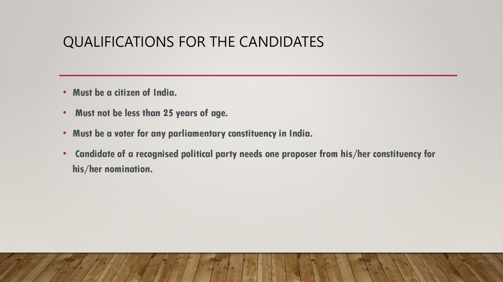 QUALIFICATIONS FOR THE CANDIDATES• Must be a citizen of India.