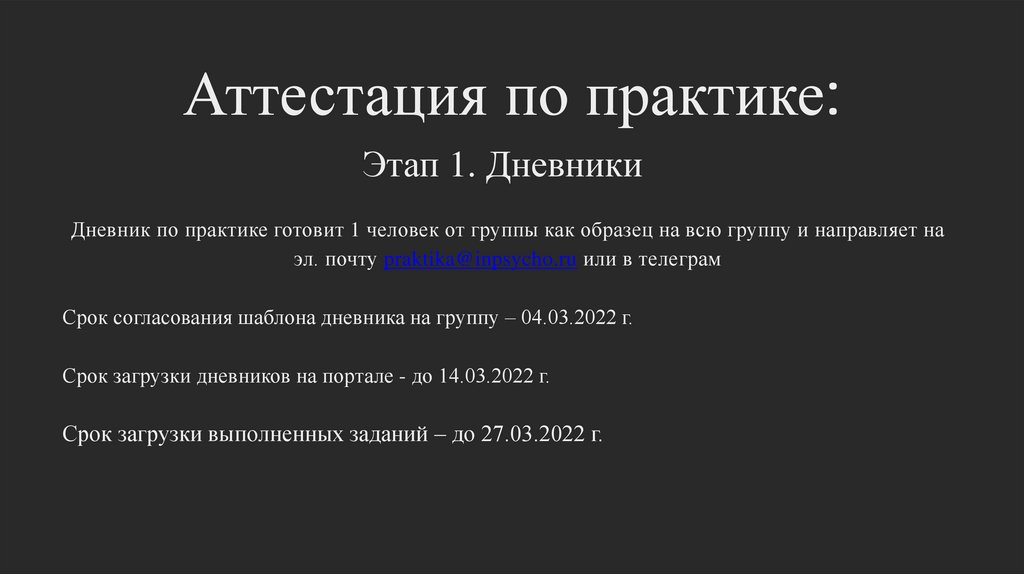 Дневник по практике готовит 1 человек от группы как образец на всю группу и направляет на