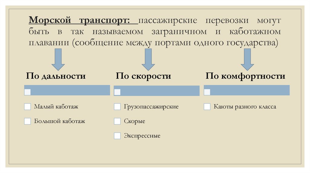 Морской транспорт: пассажирские перевозки могутбыть в так называемом заграничном и каботажном