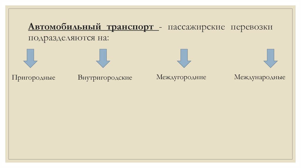Автомобильный транспорт - пассажирские перевозкиподразделяются на: