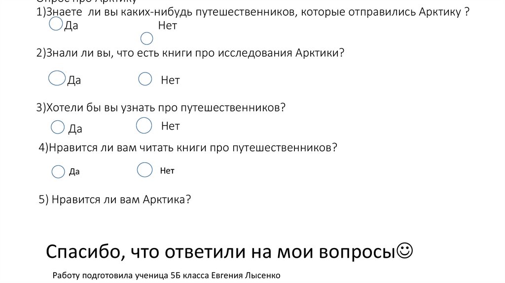 Опрос про Арктику1)Знаете ли вы каких-нибудь путешественников, которые отправились Арктику ?