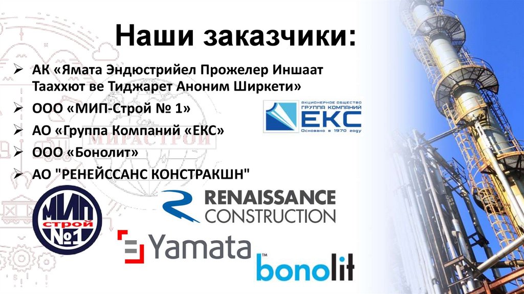 Наши заказчики:АК «Ямата Эндюстрийел Прожелер Иншаат