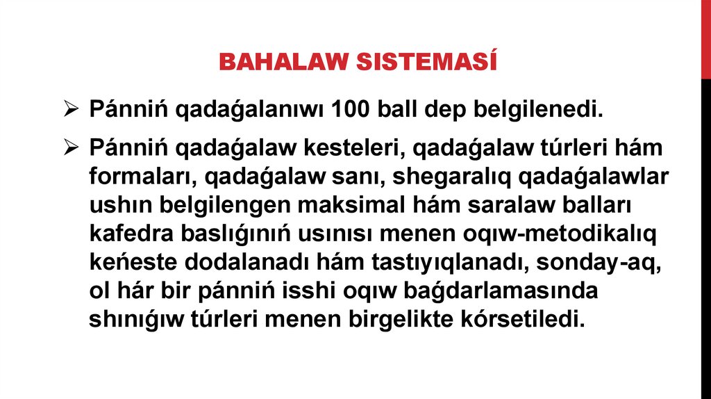 ballın toplay almaǵan student qayta oqıw ushın tiyisli kursta qaldırıladı.