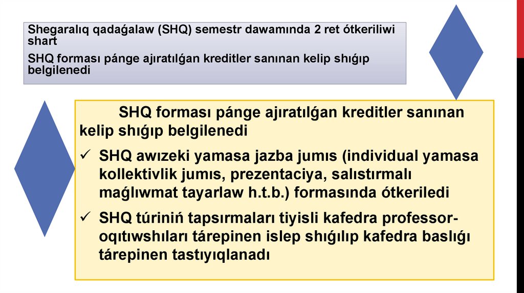 Kredit – bul studenttiń jumıs júklemesiniń birligi1 Kredit háptedegi 30 saat júklemege teń