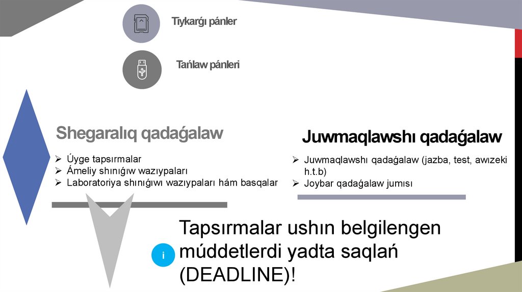 Sabaq júklemelerine baylanıslı pánlerdiń