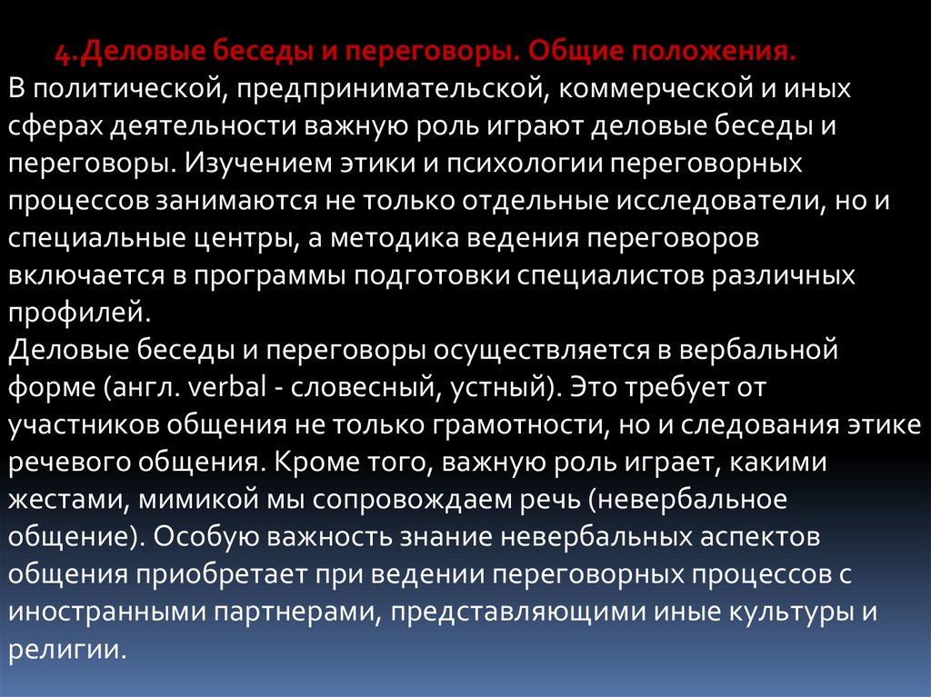 4.Деловые беседы и переговоры. Общие положения.