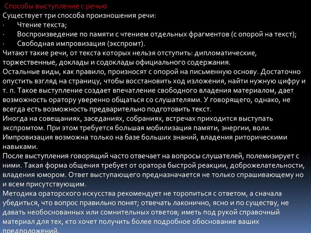 т. п. Такое выступление создает впечатление свободного владения материалом, дает