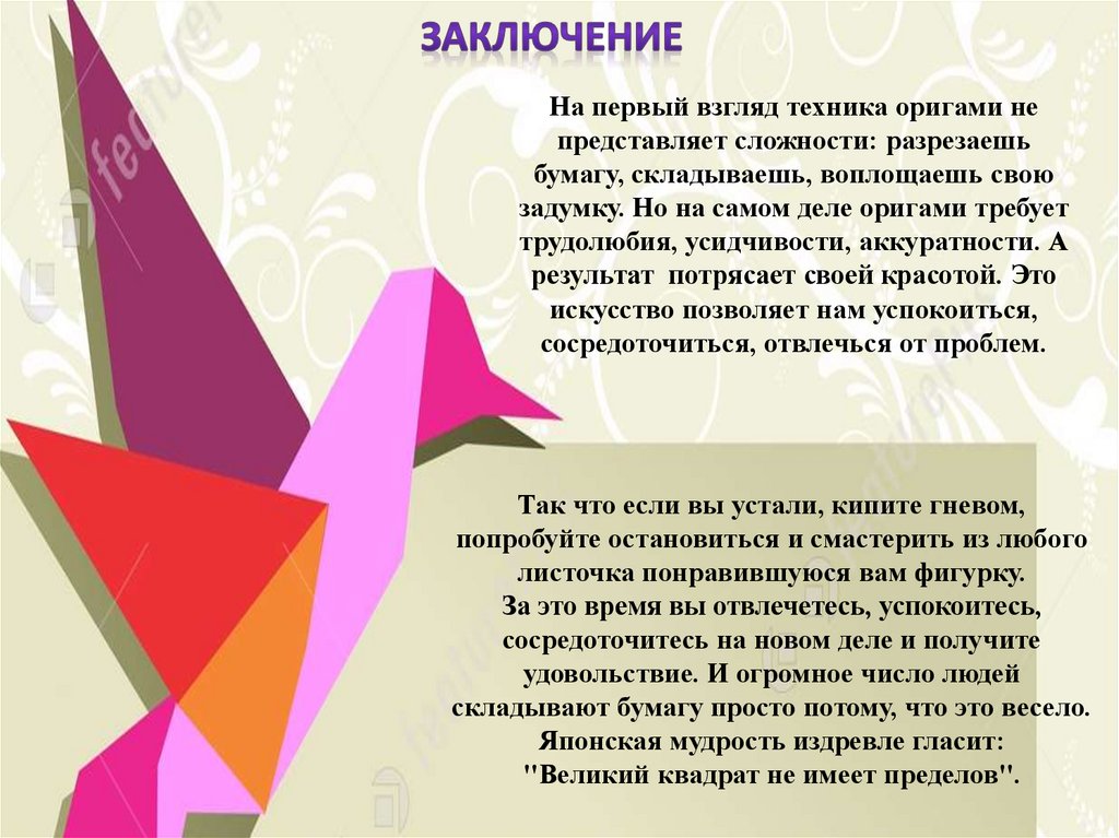 задумку. Но на самом деле оригами требует