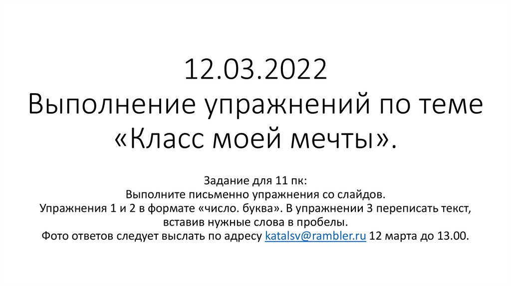 12.03.2022Выполнение упражнений по теме