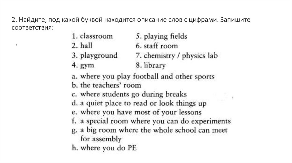 2. Найдите, под какой буквой находится описание слов с цифрами. Запишитесоответствия: