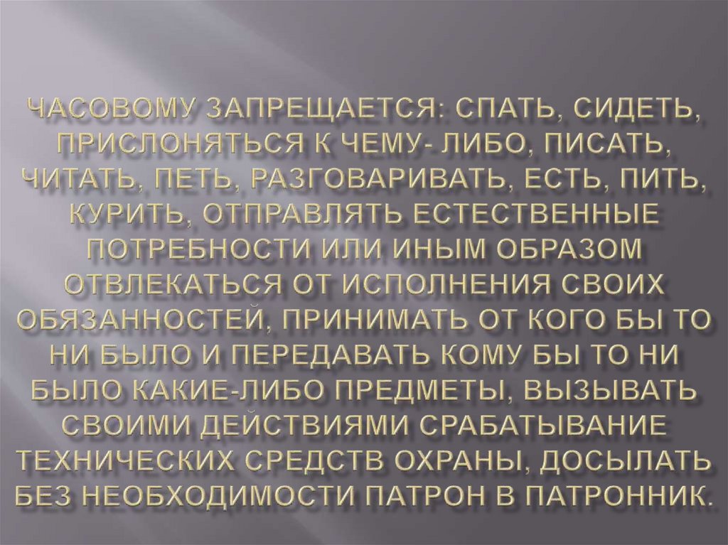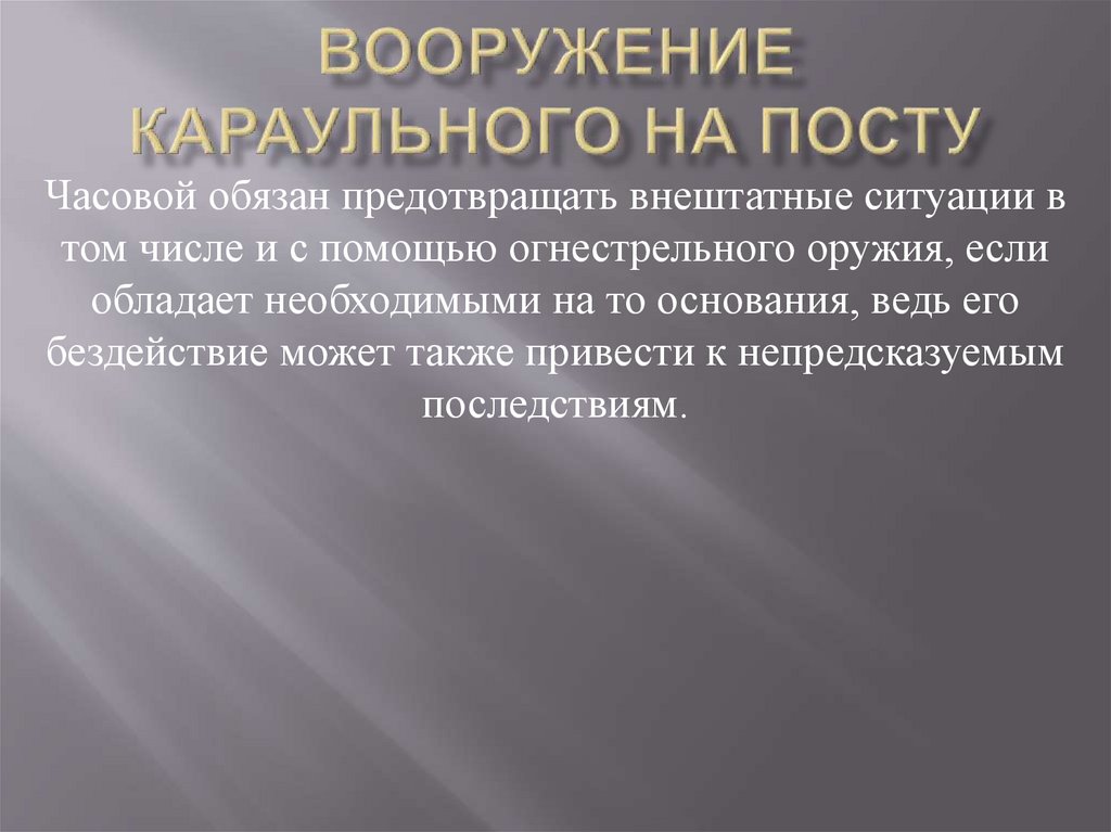 Часовой обязан предотвращать внештатные ситуации втом числе и с помощью огнестрельного оружия, если