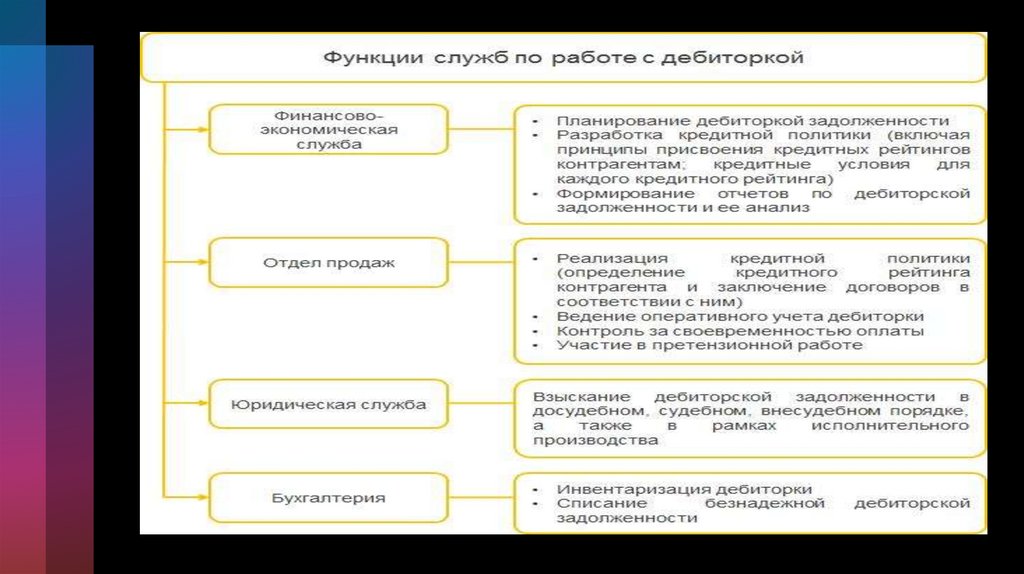 можно, к примеру, охватить все аспекты работы с дебиторкой, а