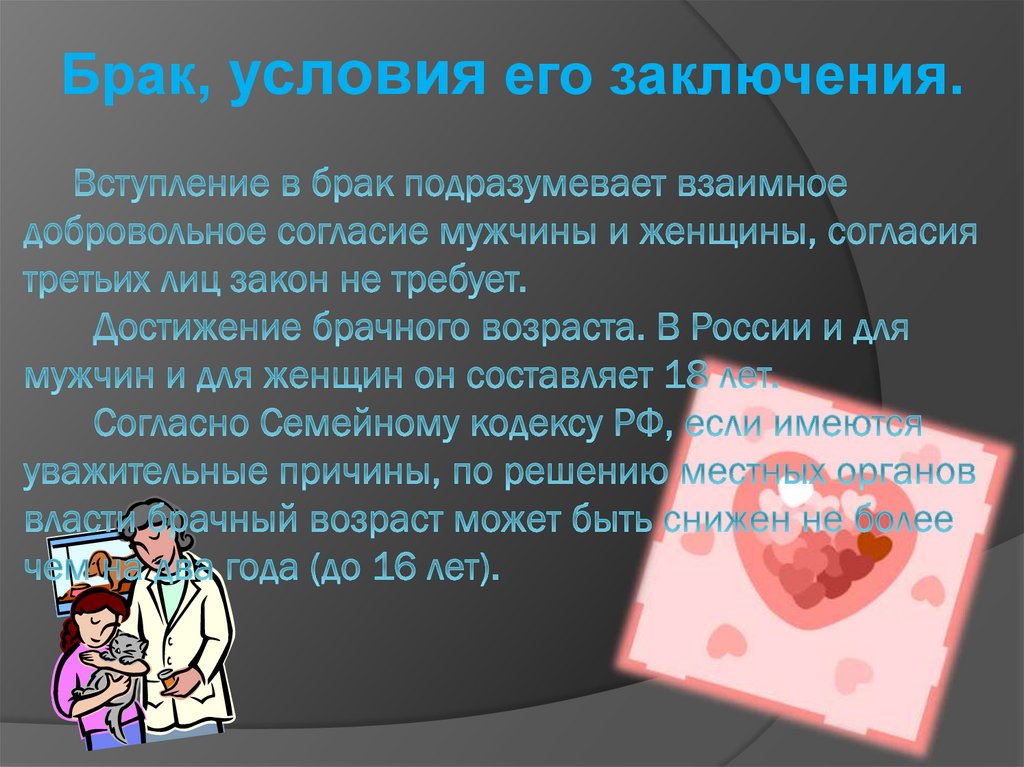 Брак, условия его заключения.