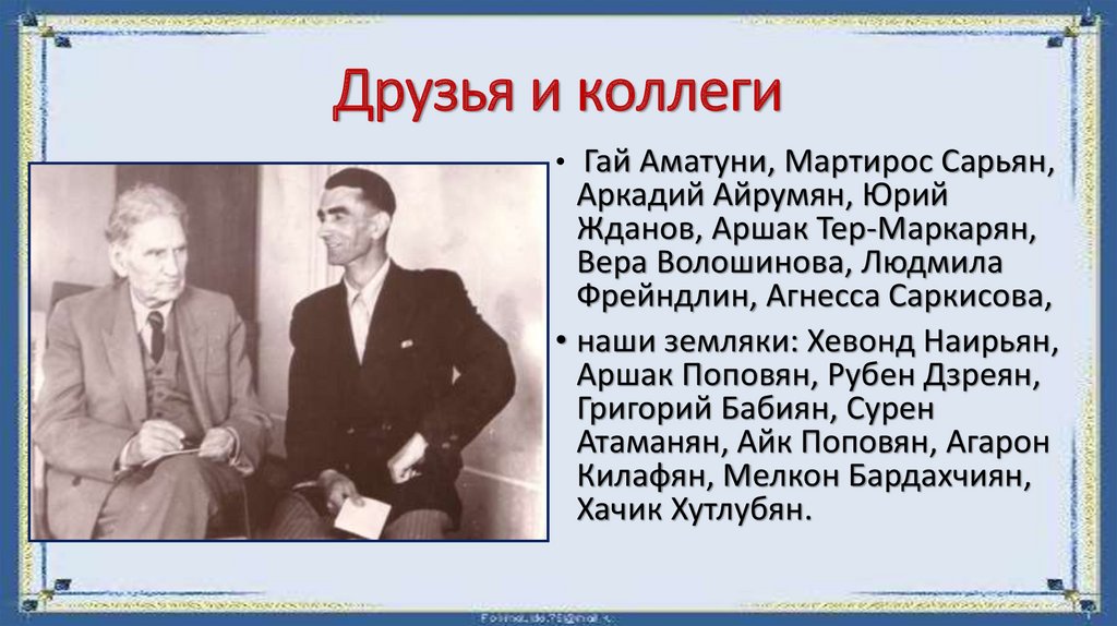 Друзья и коллеги• Гай Аматуни, Мартирос Сарьян,