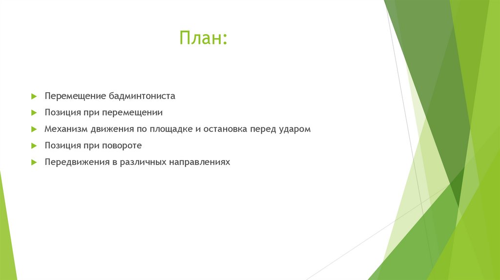Перемещение бадминтонистаПеремещение бадминтониста по площадке должно быть свободным,