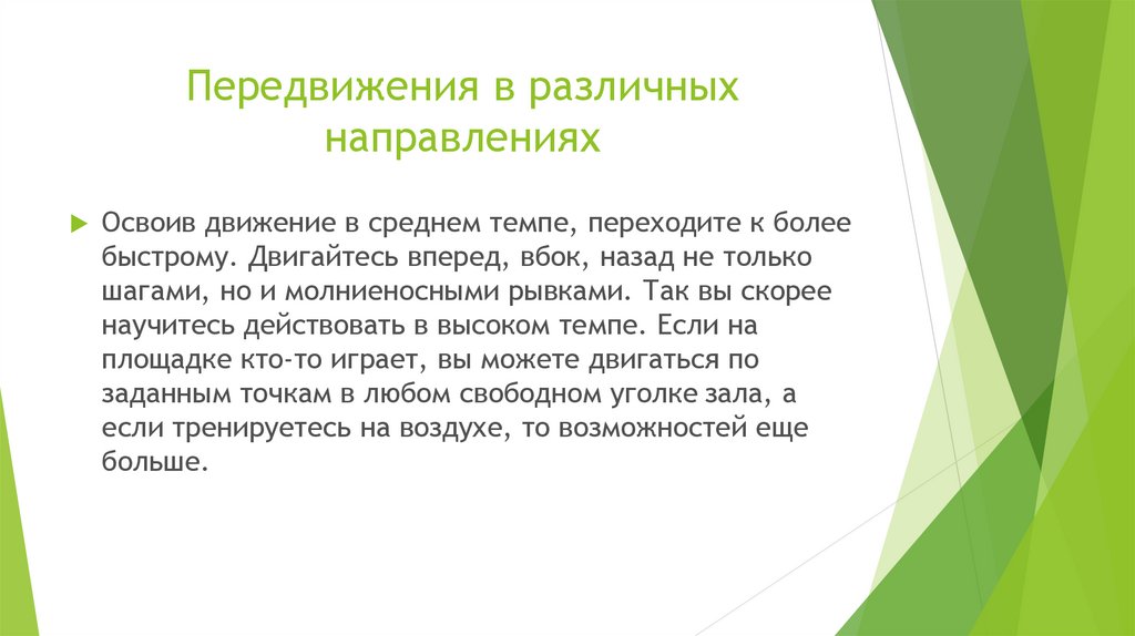 быстрому. Двигайтесь вперед, вбок, назад не только
