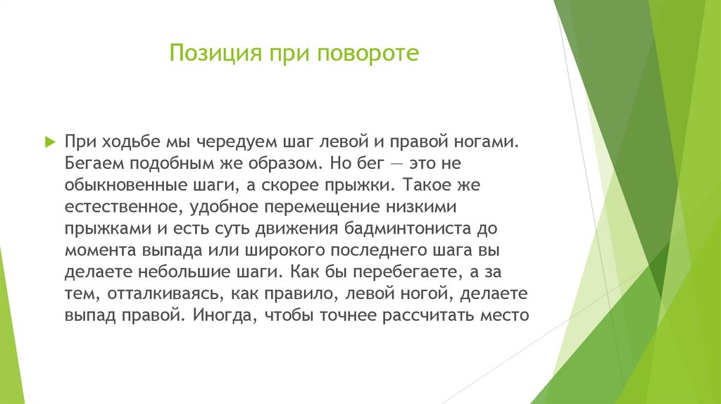 Позиция при поворотеПри ходьбе мы чередуем шаг левой и правой ногами.