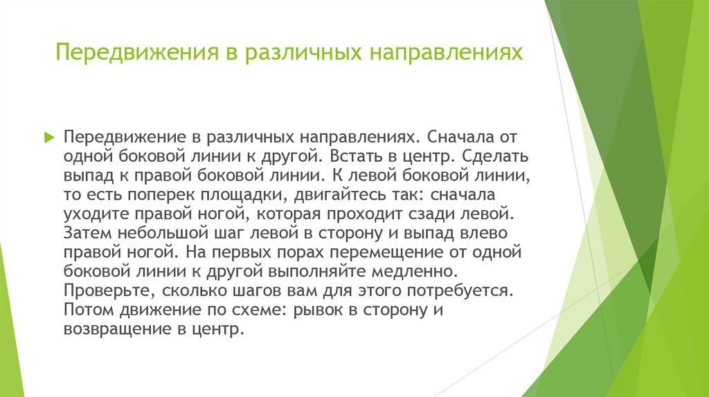 Передвижения в различных направленияхПередвижение в различных направлениях. Сначала от