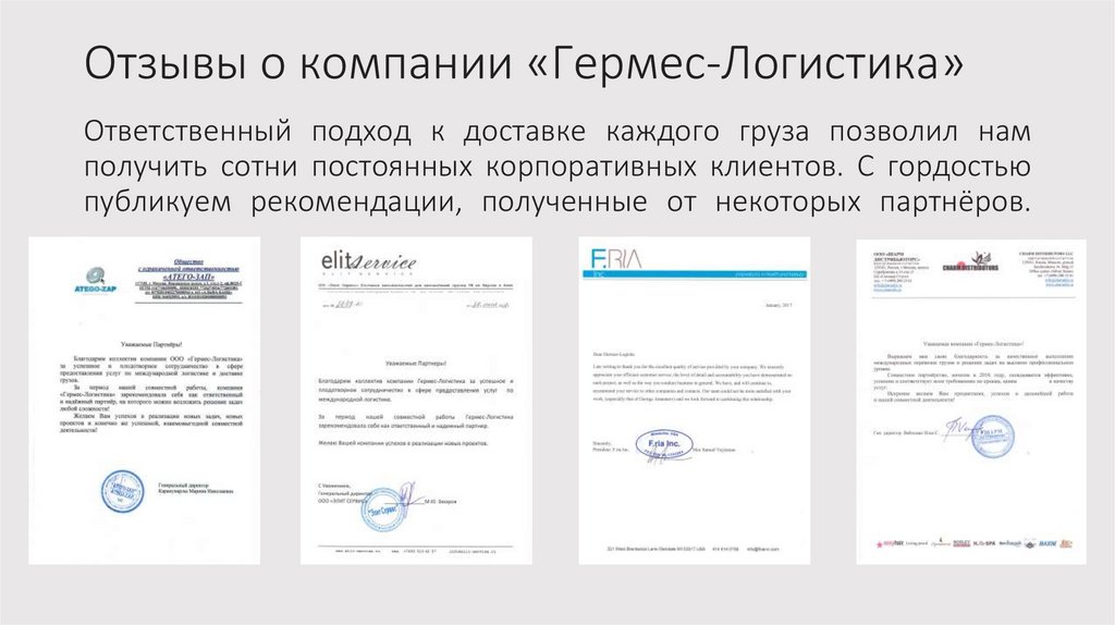 Отзывы о компании «Гермес-Логистика»Ответственный подход к доставке каждого груза позволил нам