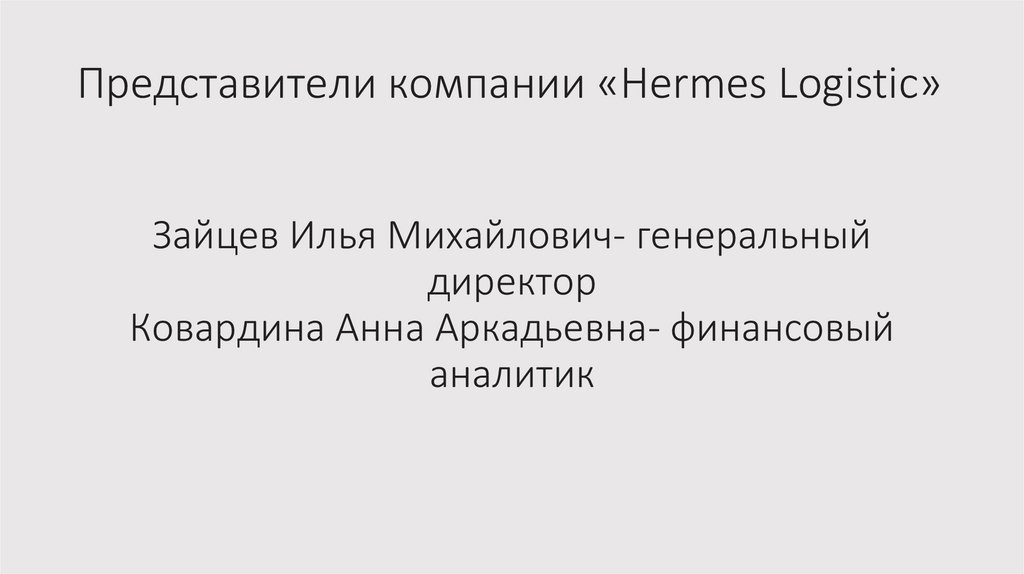 Представители компании «Hermes Logistic»Зайцев Илья Михайлович- генеральный