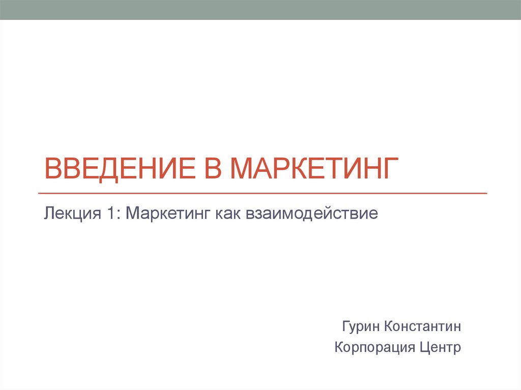 ВВЕДЕНИЕ В МАРКЕТИНГЛекция 1: Маркетинг как взаимодействие
