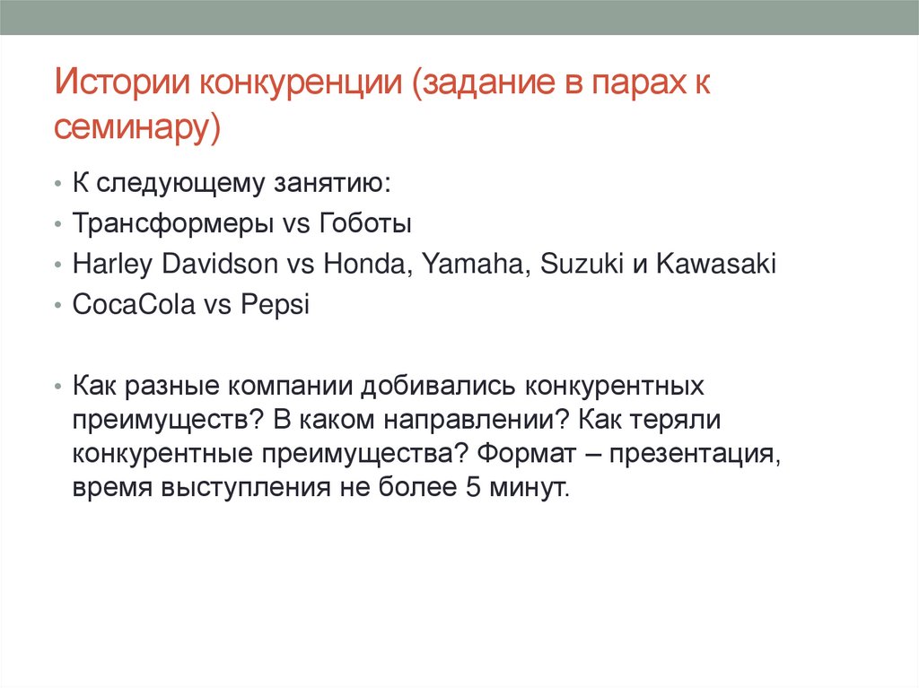 Истории конкуренции (задание в парах ксеминару)