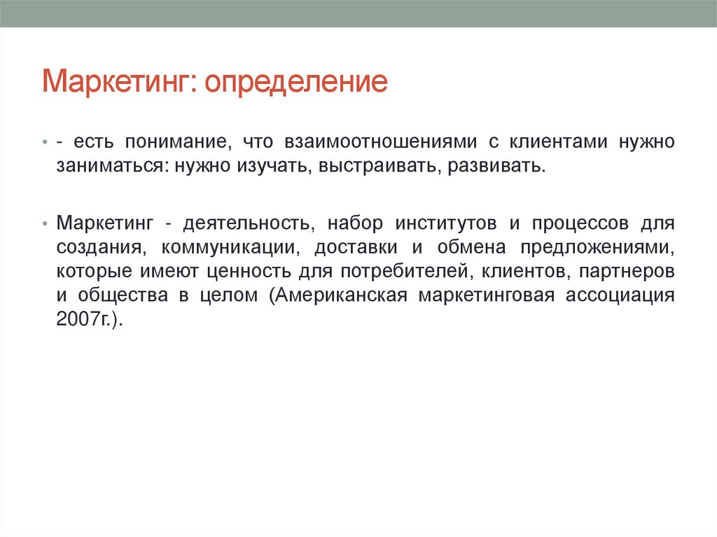 Маркетинг: определение• - есть понимание, что взаимоотношениями с клиентами нужно