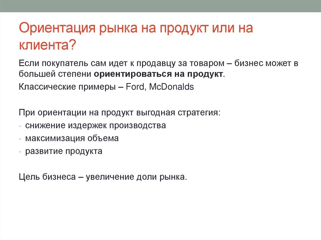 Ориентация рынка на продукт или наклиента?