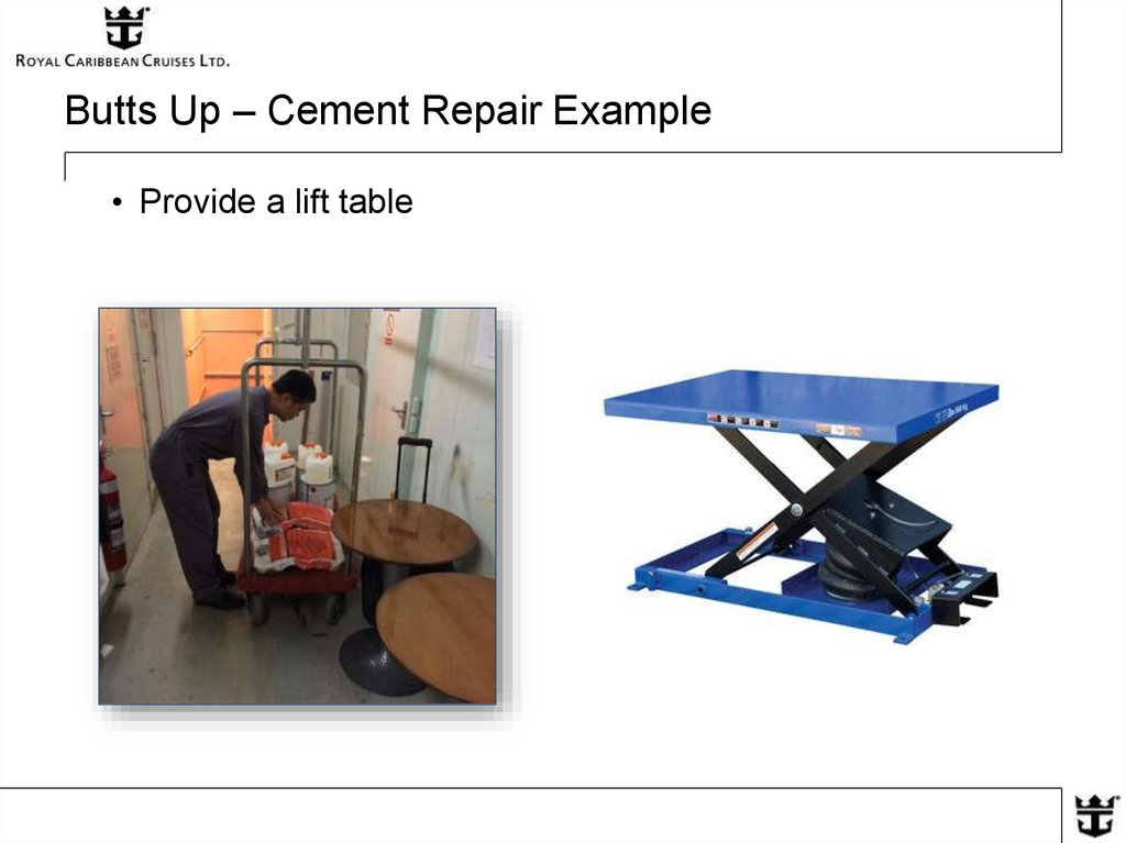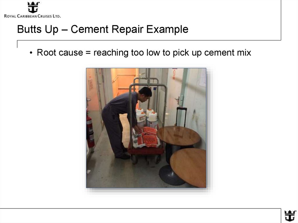 Butts Up – Cement Repair Example• Root cause = reaching too low to pick up cement mix