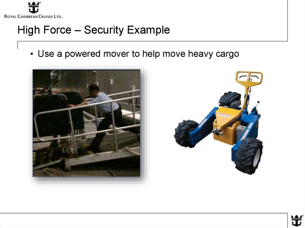 High Force – Security Example• Use a powered mover to help move heavy cargo