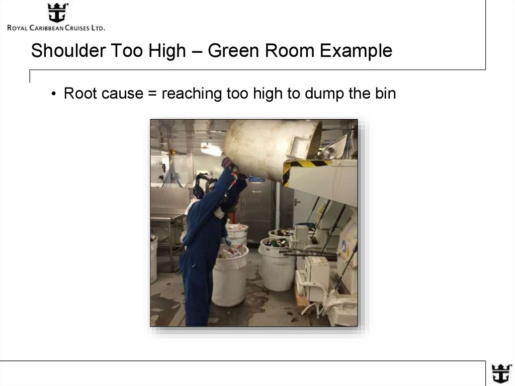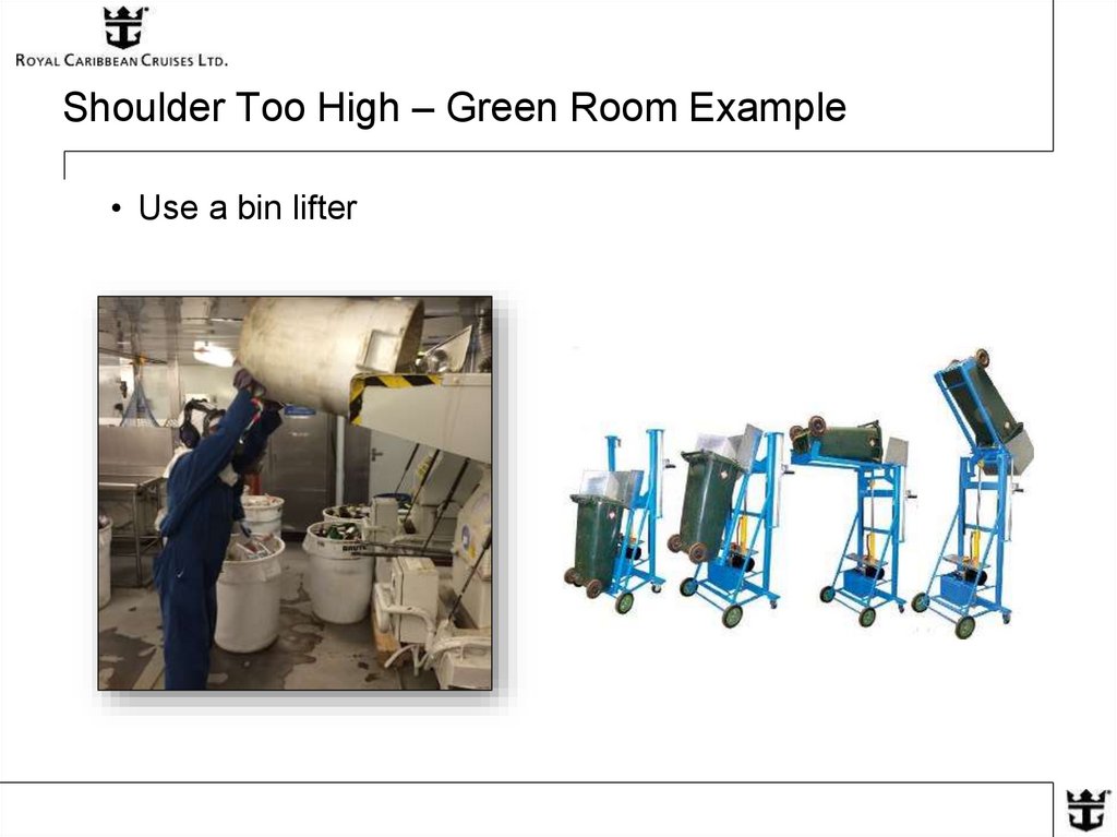 Shoulder Too High – Green Room Example• Root cause = reaching too high to dump the bin