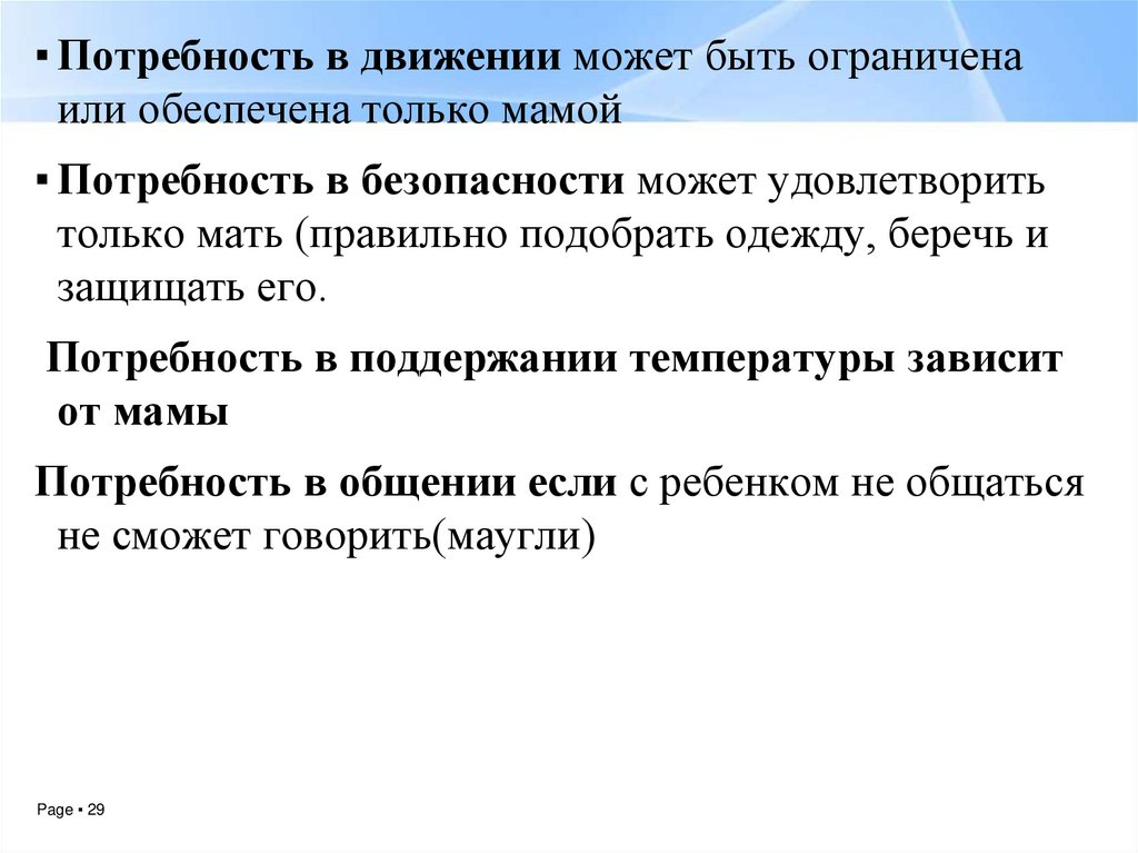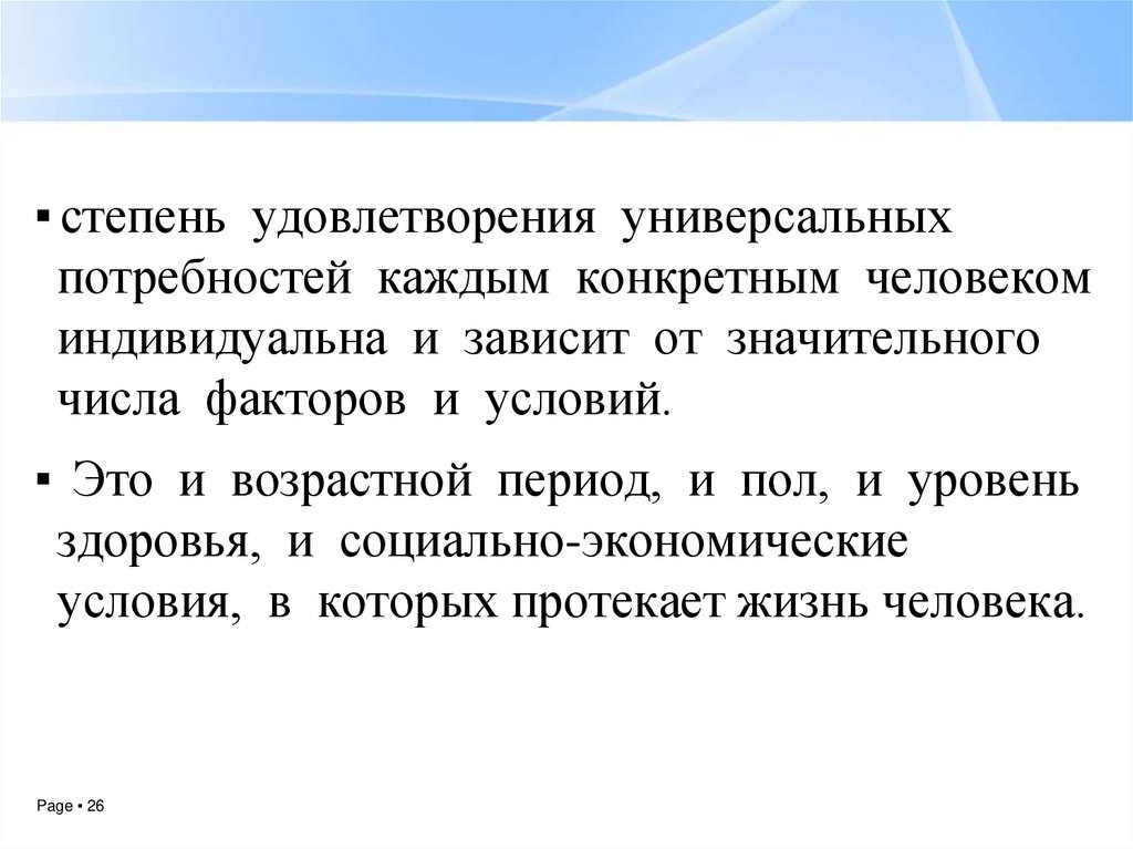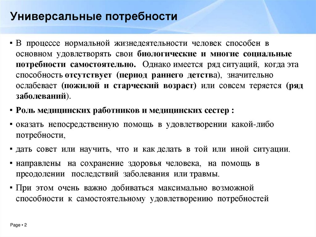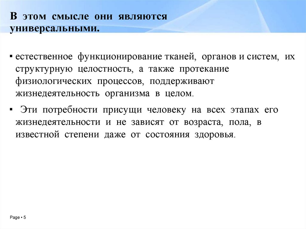 Универсальные потребности▪ В процессе нормальной жизнедеятельности человек способен в