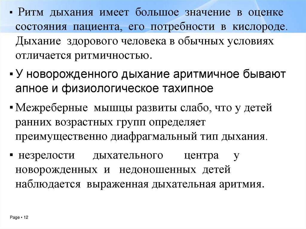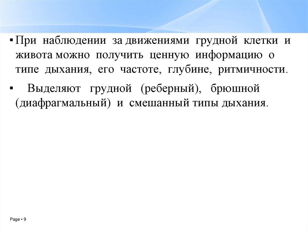 ▪ При наблюдении за движениями грудной клетки иживота можно получить ценную информацию о