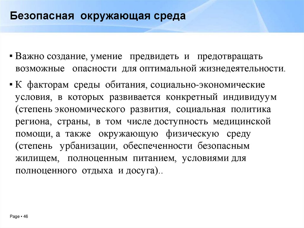 Безопасная окружающая среда▪ Важно создание, умение предвидеть и предотвращать