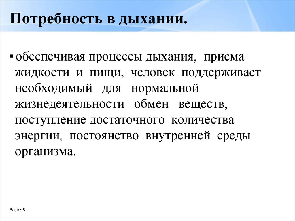 Потребность в дыхании.▪ обеспечивая процессы дыхания, приема