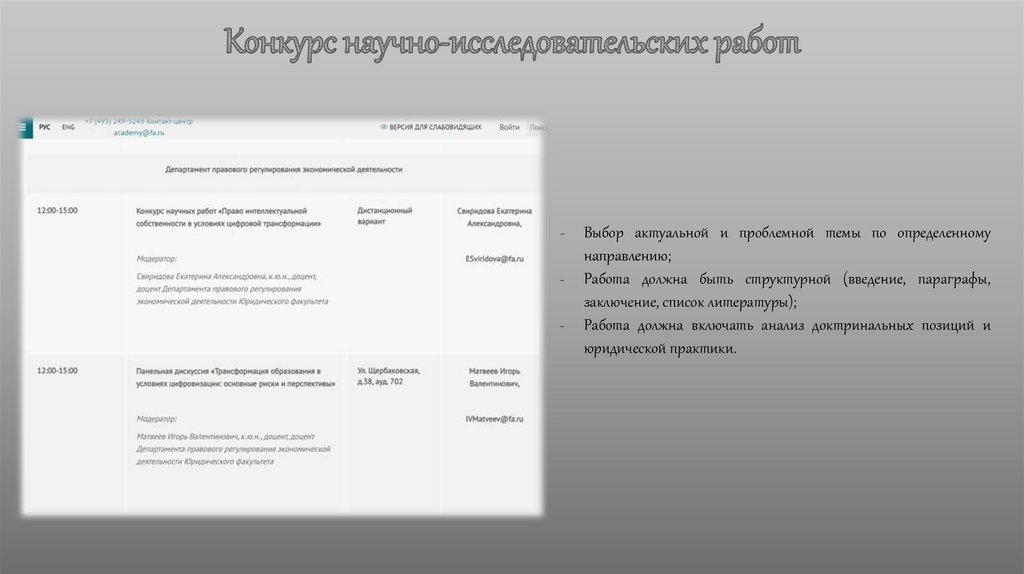 Финуниверситета - «Развитие правовой системы для формирования условий экономического лидерства России».