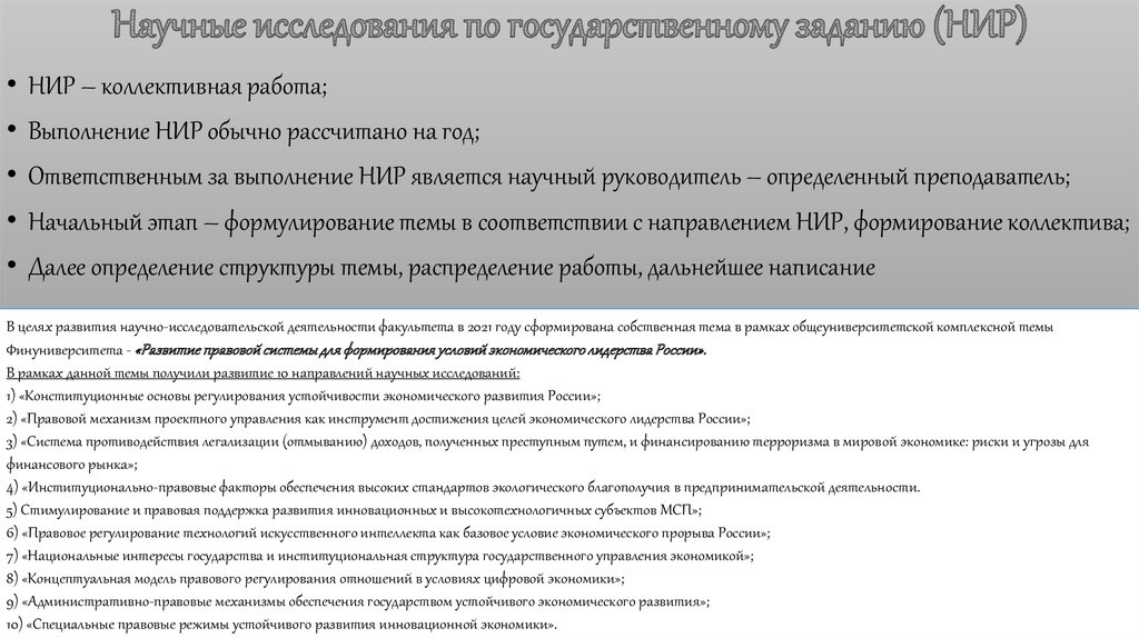 Научные исследования по государственному заданию (НИР)
