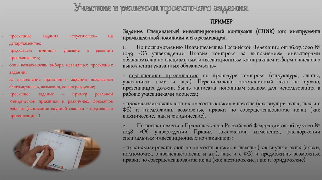 Задание. Специальный инвестиционный контракт (СПИК) как инструмент
