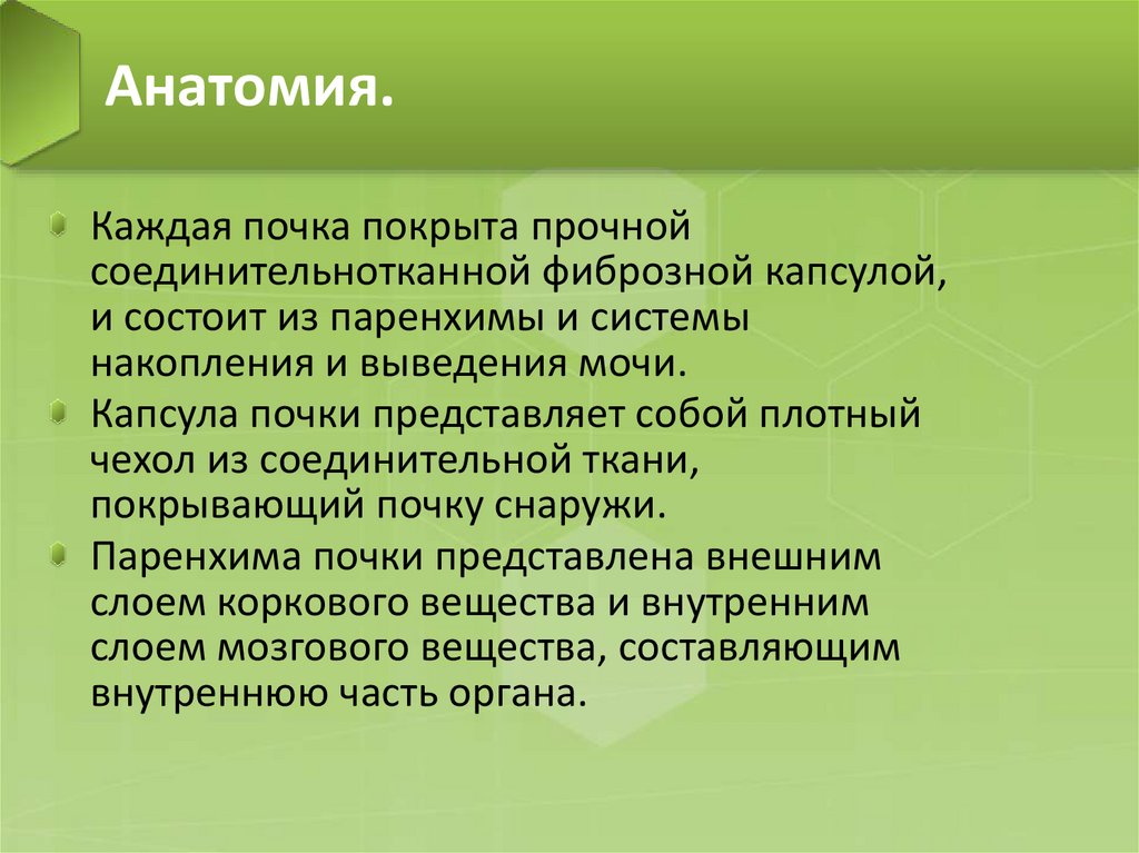 Анатомия.Каждая почка покрыта прочной