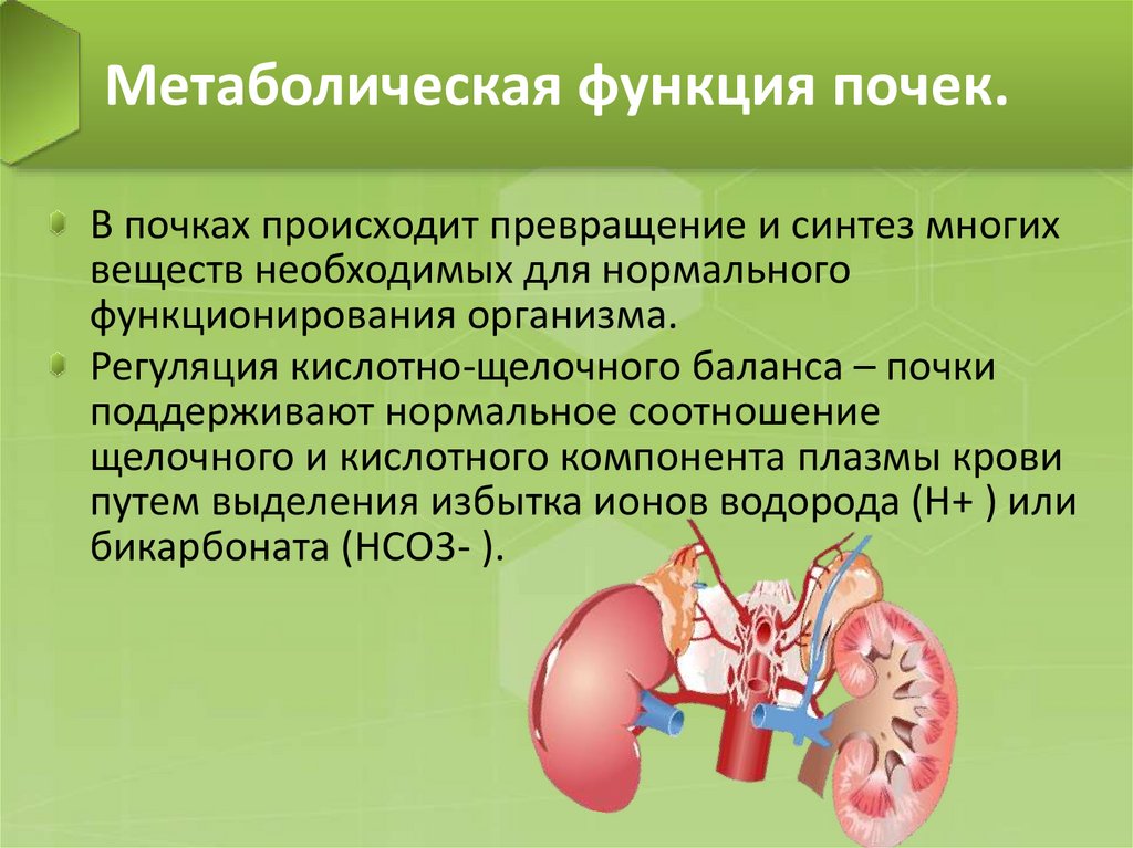Метаболическая функция почек.В почках происходит превращение и синтез многих
