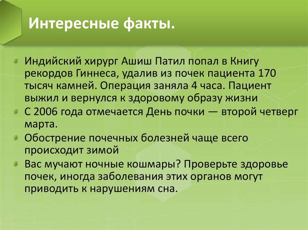 рекордов Гиннеса, удалив из почек пациента 170