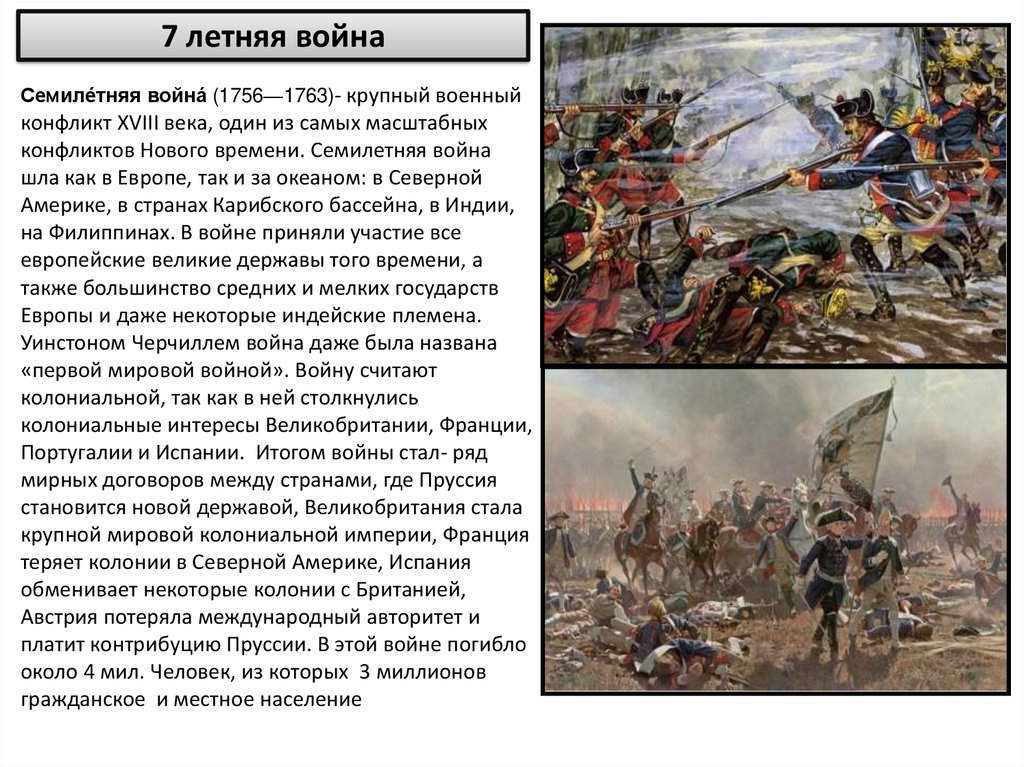 7 летняя войнаСемиле́тняя война́ (1756—1763)- крупный военный