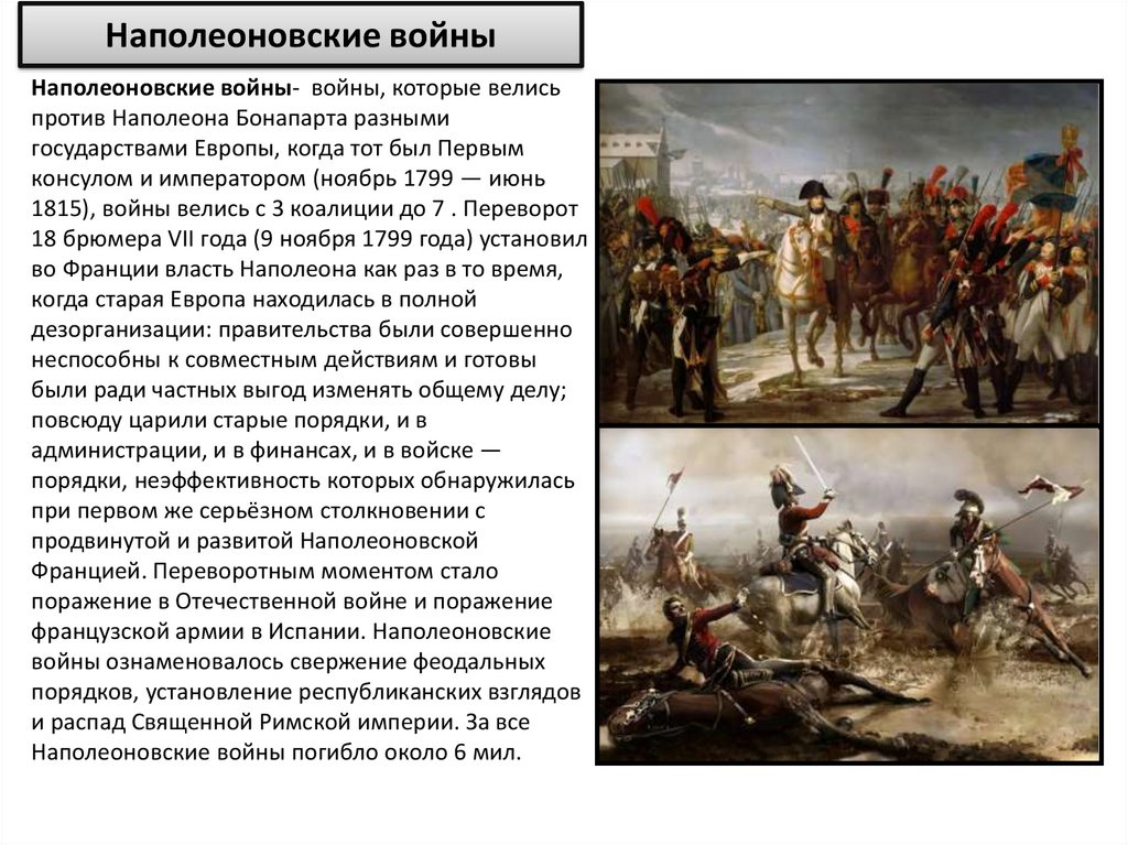 Наполеоновские войныНаполеоновские войны- войны, которые велись
